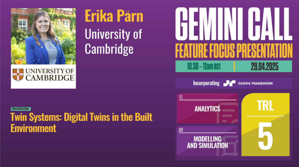 Erika Pärn of University of Cambridge presents ‘Twin Systems: digital twins in the built environment’ for the Feature Focus on the DT Hub’s weekly Gemini…