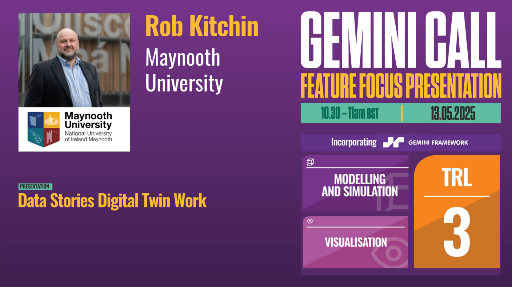 Rob Kitchin of Maynooth University presents ‘Data stories digital twin work’ for the Feature Focus on the DT Hub’s weekly Gemini Call from 13 May…